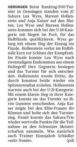 Der JC Sakura am Ranking 500 in Oensingen Von Sekretariat19. Februar 201919. Februar 2019Allgemeine News Bericht aus der Landeszeitung – Foto Archiv Mareen Hollenstein Lea Wyss